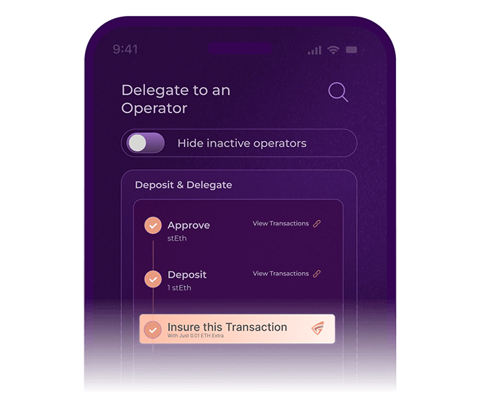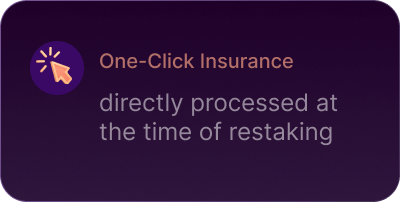 One-Click Restaking Insurance for EigenLayer. Users can insure their restaked LSTs on any Eigen Operator or interface directly at the time of restaking.